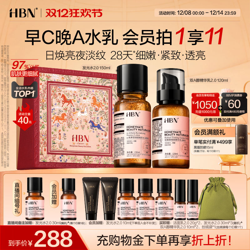 【圣诞礼物】HBN早C晚A水乳套装2.0护肤品发光水提亮淡纹紧致抗皱