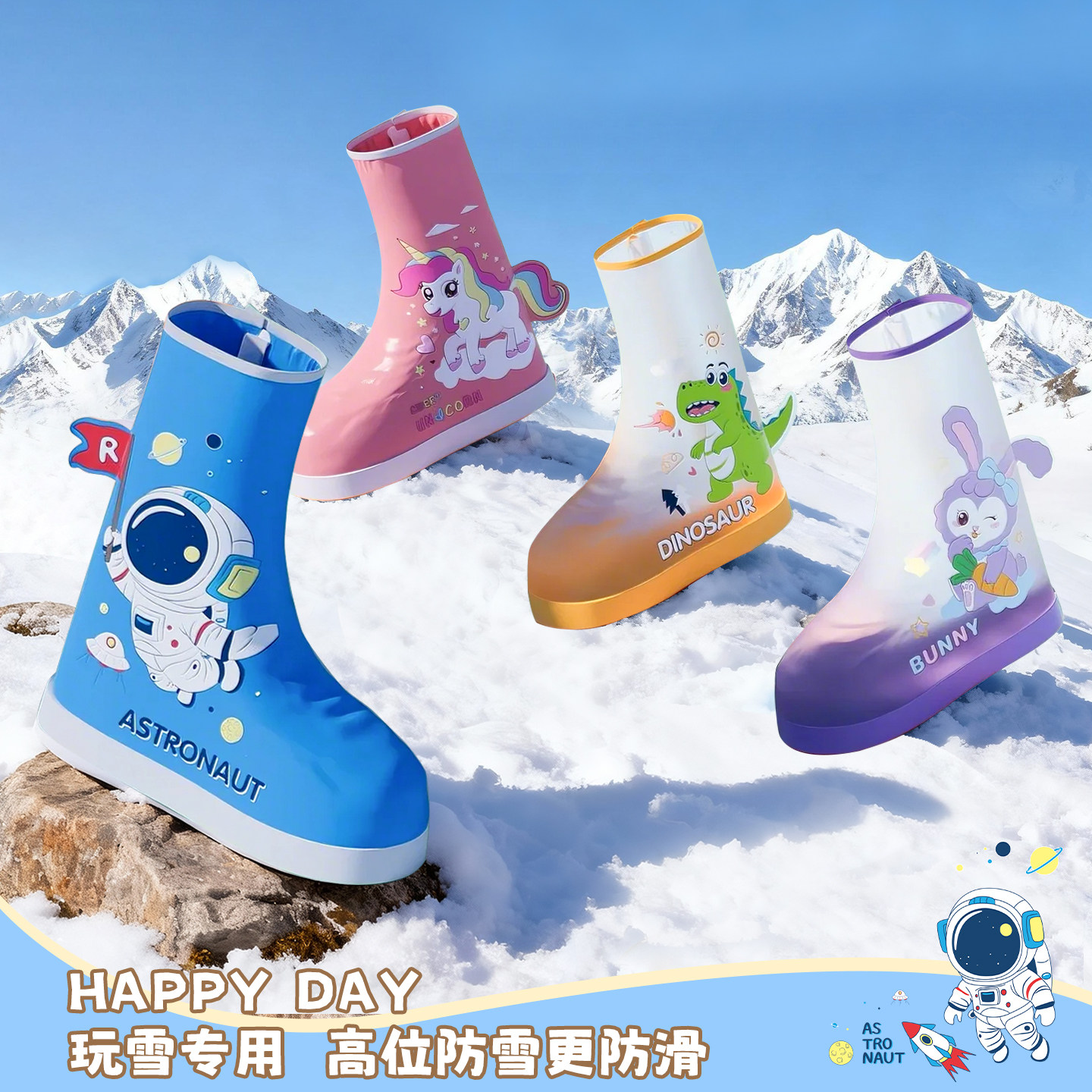 防雪鞋套儿童玩雪防水冬季雪地防滑雨鞋套小学生上学滑雪雨靴高筒