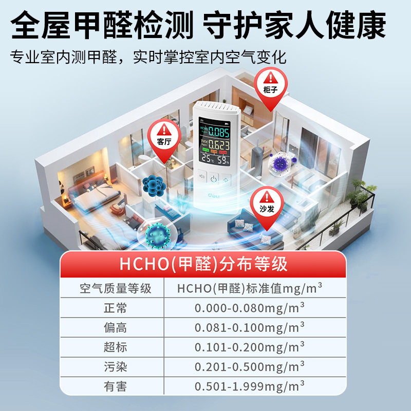 得力甲醛检测仪高精度家用专业新房自测甲醛室内空气质量测试仪器