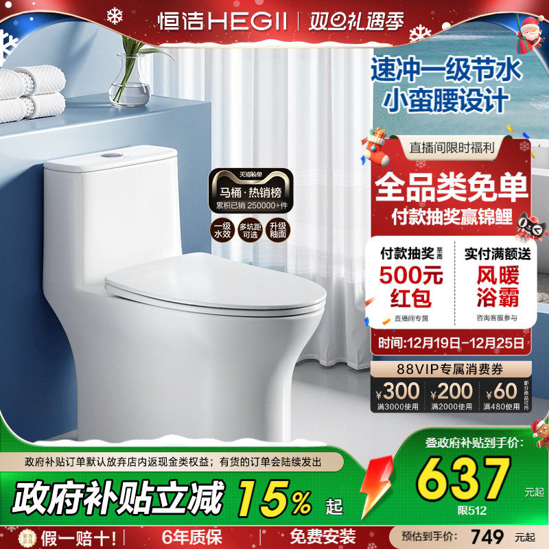 [直播间补贴]恒洁马桶虹吸式家用防臭卫浴陶瓷佛山节水坐便器512