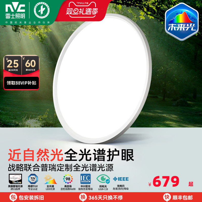 推荐理由:雷士照明未来光超薄儿童房灯全光谱护眼吸顶灯卧室灯灯具侧发光