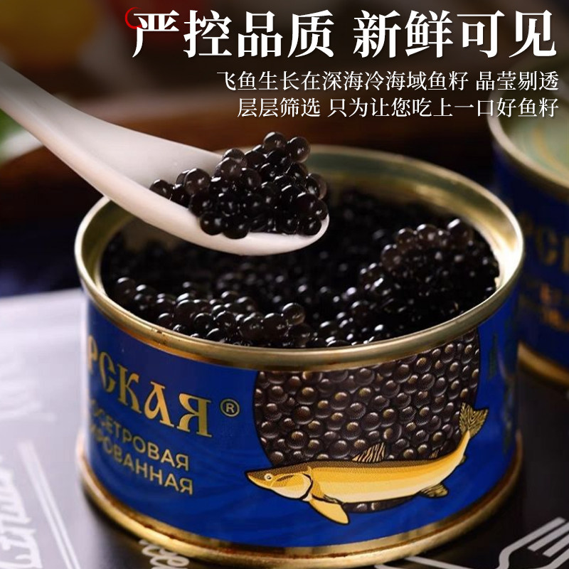 俄罗斯进口仿鱼子酱罐头即食红鱼子酱黑鱼籽酱寿司料理零食零卡