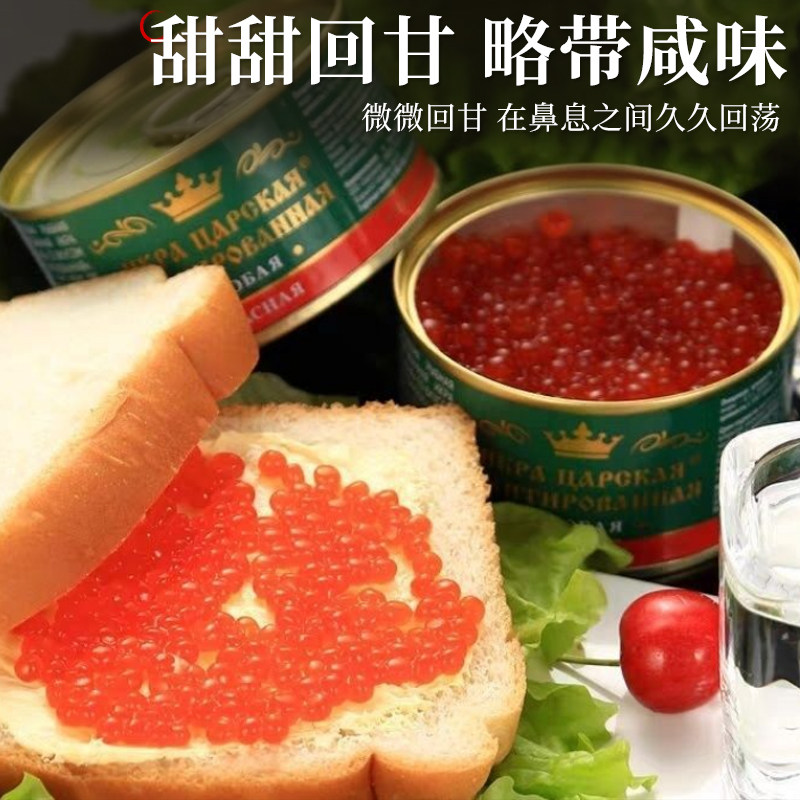 推荐理由:俄罗斯进口仿鱼子酱罐头即食红鱼子酱黑鱼籽酱寿司料理零食零卡