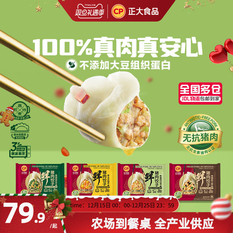正大无抗鲜猪肉饺子三鲜水饺速冻蒸饺速食煎饺半成品早餐饺子