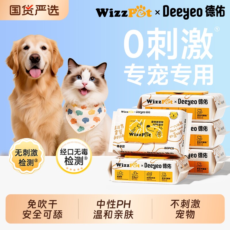 德佑宠物湿巾狗狗猫咪专用湿巾纸泪痕清洁用品湿纸巾免洗毛发屁股
