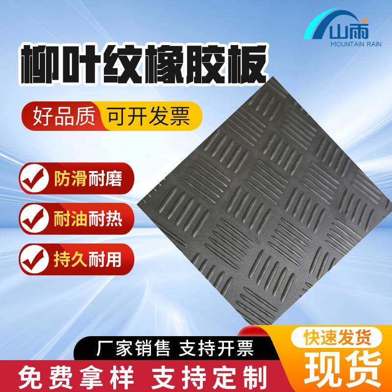 推荐理由:柳叶纹橡胶板防滑阻燃耐高温腐蚀黑色厂房操场电子元件通用直供