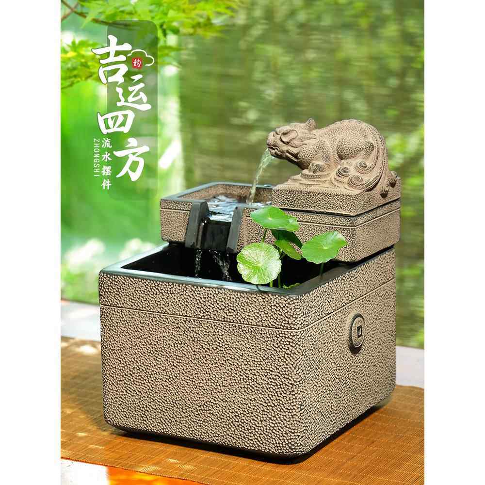 玄关生财流水摆件循环水茶室氛围布置办公室日进斗金风水水系景观