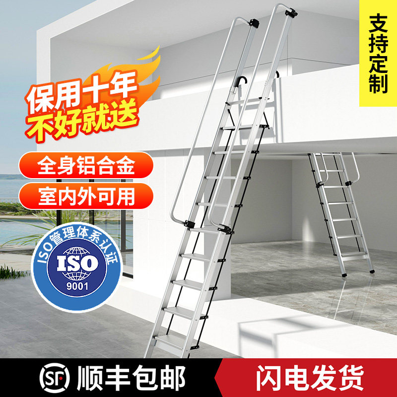 家用便携折叠阁楼梯加厚铝合金室内带挂钩单边梯子上下铺直梯爬梯
