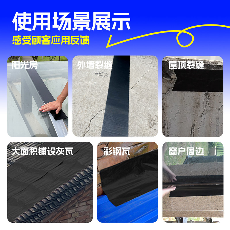 屋顶防水补漏材料沥青瓦裂缝胶带丁基卷材强力防水贴自粘胶布黑色