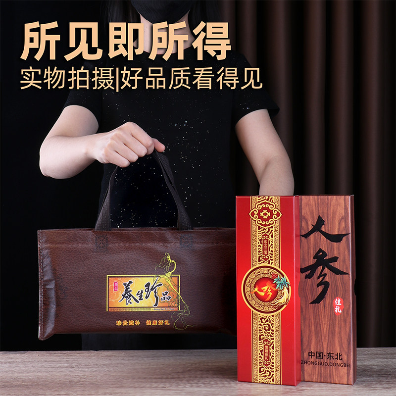 吉林人参长白山山参礼盒滋补品礼盒装林下参移山参泡酒证书送长辈