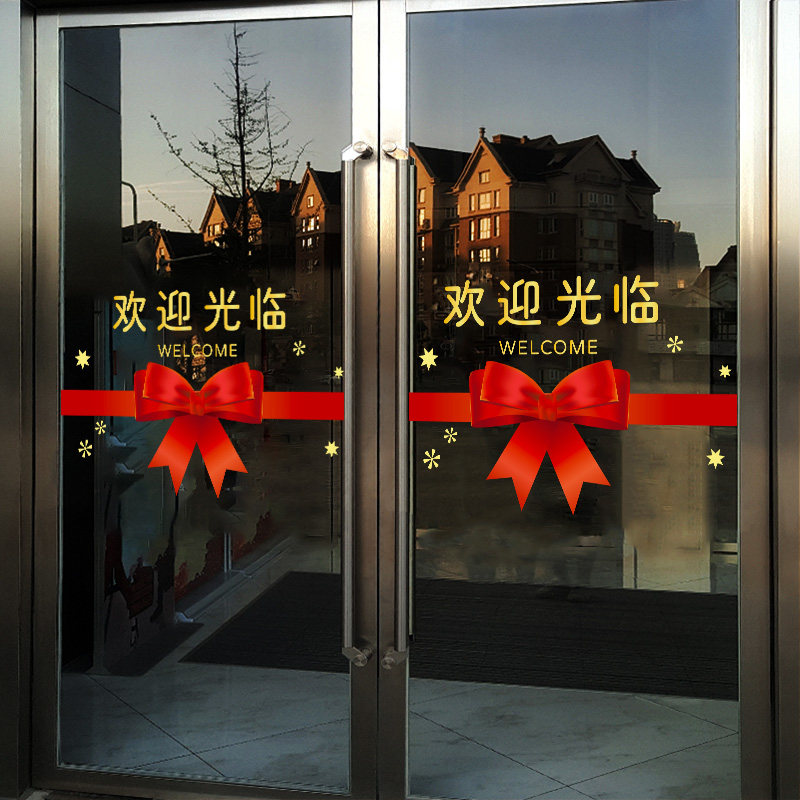 玻璃门腰线静电贴店铺橱窗美容院欢迎光临门贴装饰蝴蝶结防撞贴纸