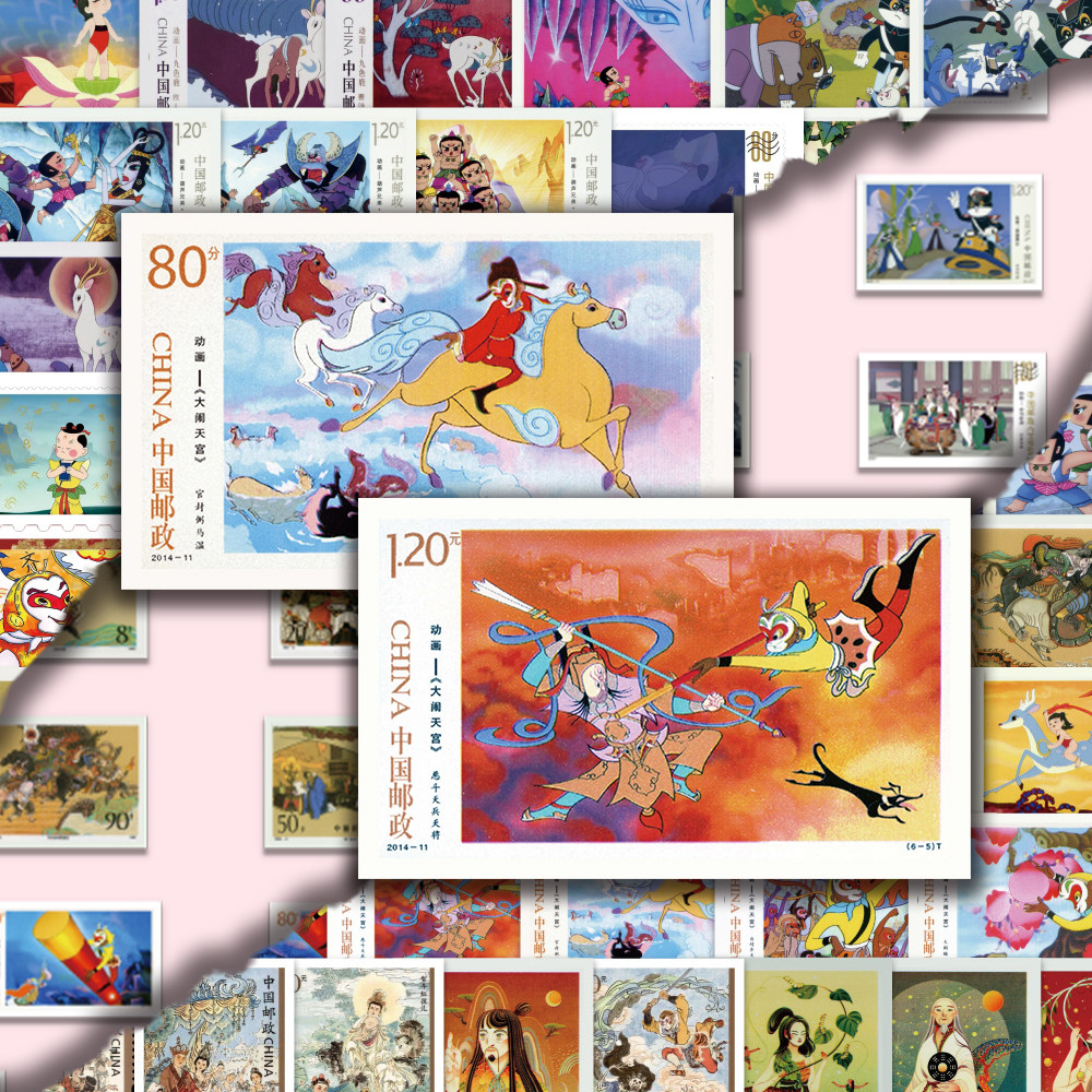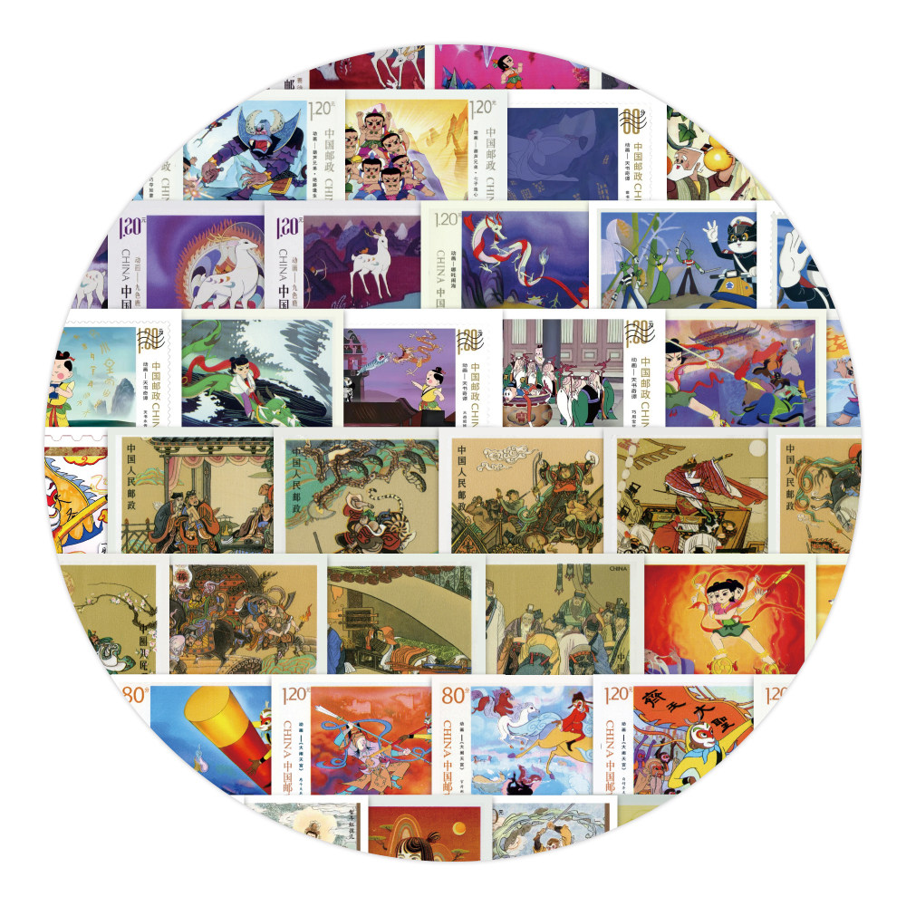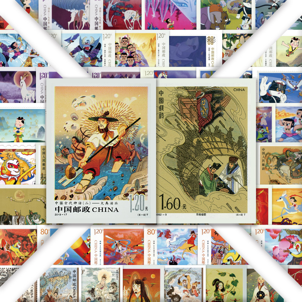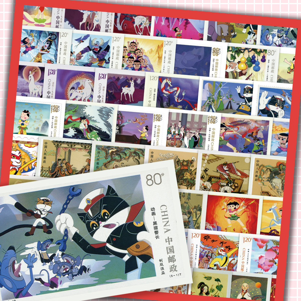 60张卡通复古邮票插画贴纸可爱防水创意手账笔记本行李箱装饰贴画