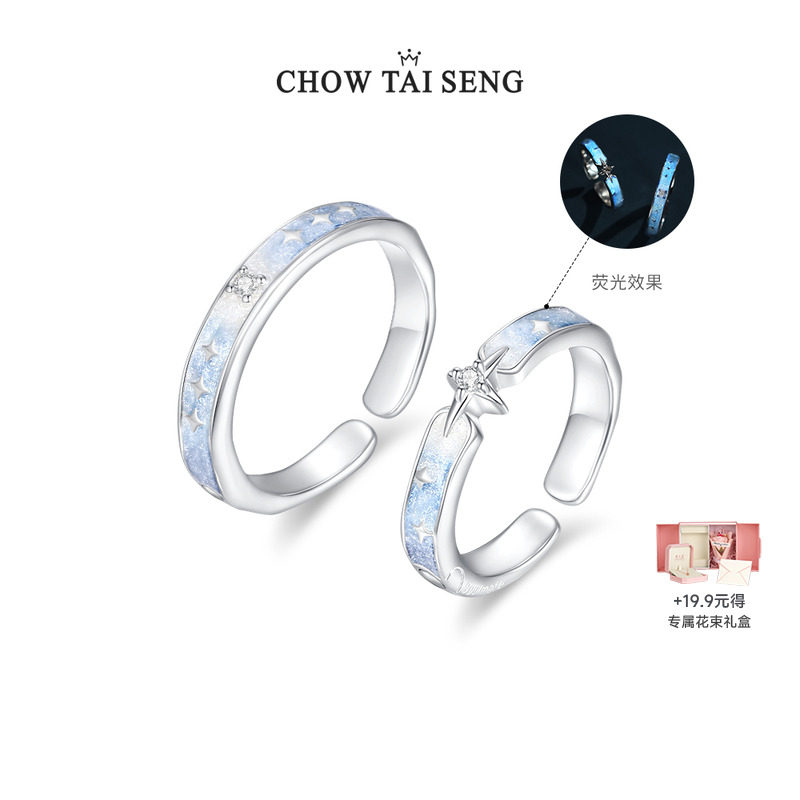 周大生夜幕繁星情侣对戒纯银荧光珐琅戒指设计感圣诞礼物送女友