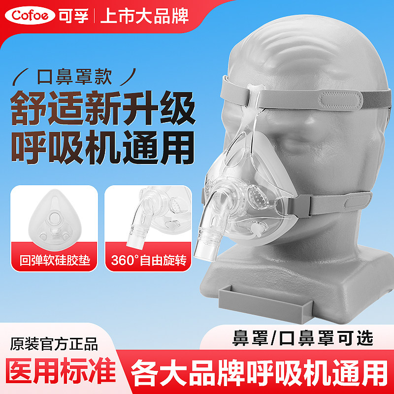 可孚呼吸机面罩家用无创睡眠呼吸器鼻罩头戴口鼻罩原装通用型配件