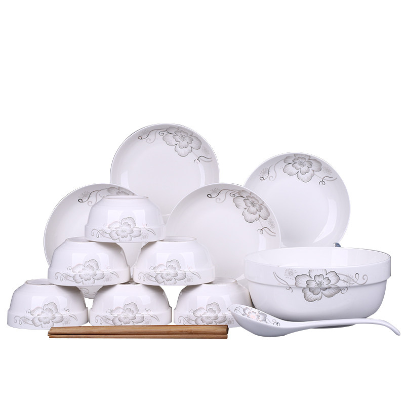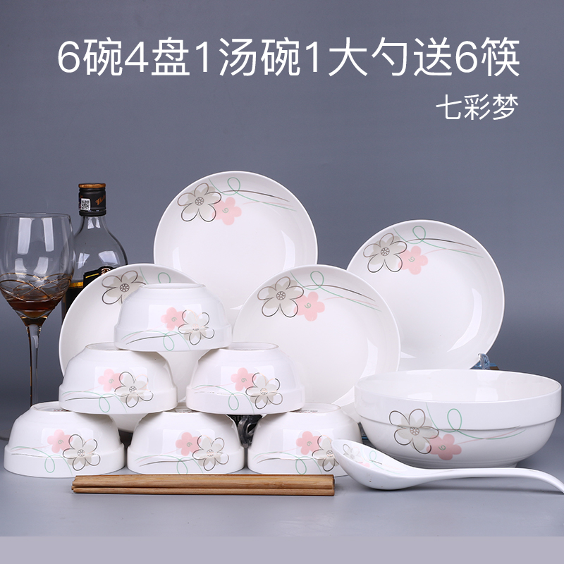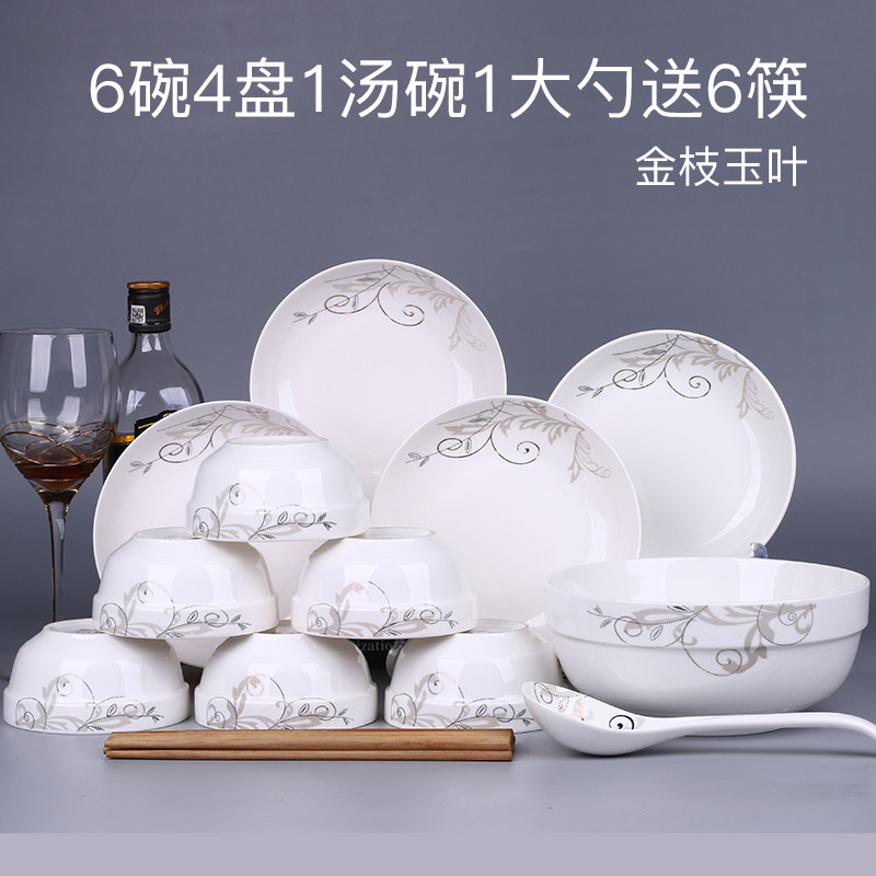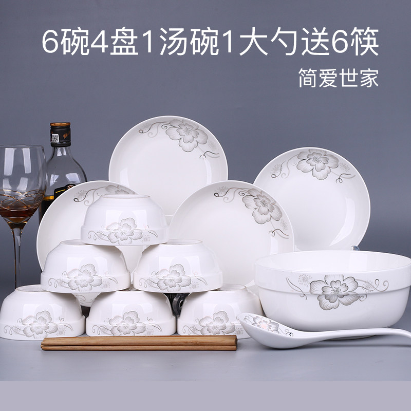 推荐理由:特价家用4人碗碟套装 中式18头盘子碗面碗汤碗组合餐具可微波瓷器