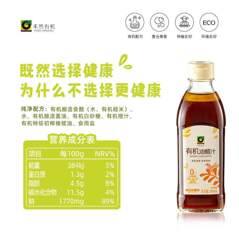 推荐理由:禾然有机小瓶装油醋汁248ml 凉拌沙拉酱