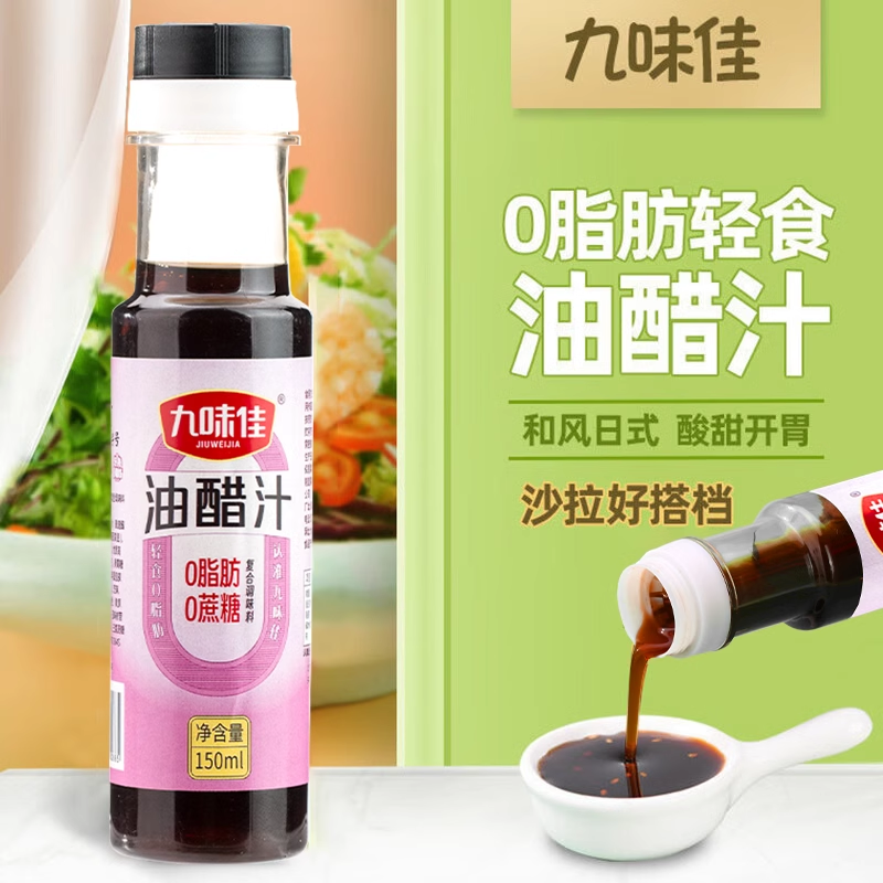 推荐理由:九味佳油醋汁150ml瓶装0脂肪油醋汁轻食健身酱料凉拌水煮菜蘸料