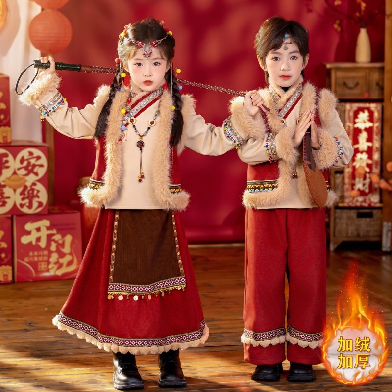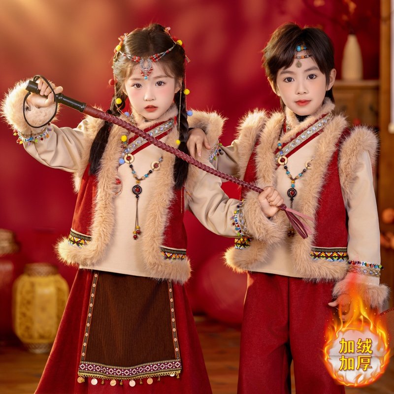 推荐理由:儿童秋冬加绒少数民族藏族风表演出服男女童幼儿园元旦蒙古舞蹈服