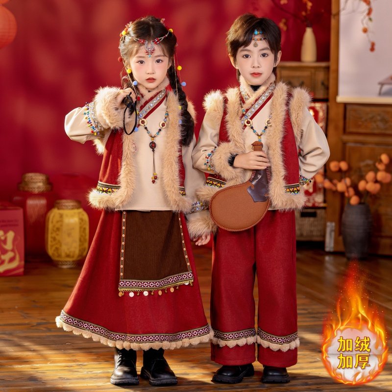 儿童秋冬加绒少数民族藏族风表演出服男女童幼儿园元旦蒙古舞蹈服