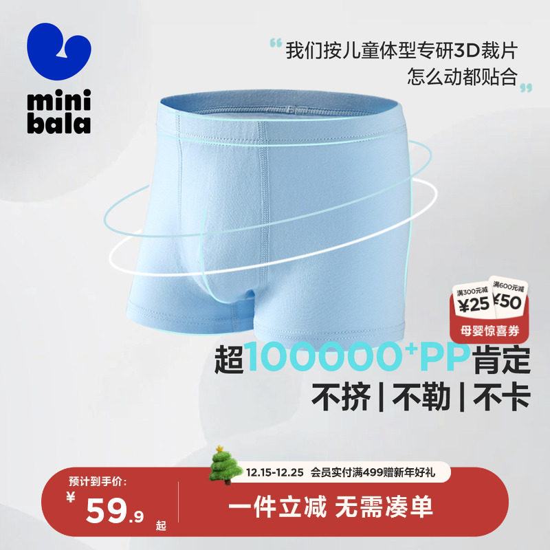 迷你巴拉巴拉儿童内裤男女宝宝抑菌不夹pp四角短裤5条装棉平角裤