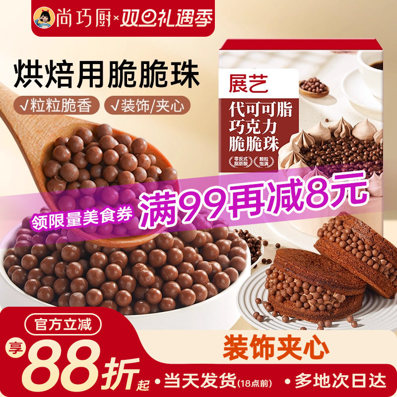 展艺巧克力脆脆珠西点蛋糕夹心装饰豆甜品烘焙家专用(代可可脂)
