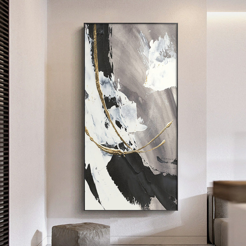 北欧现代抽象竖版装饰画走廊喷绘油画设计师非手绘玄关画走廊壁画