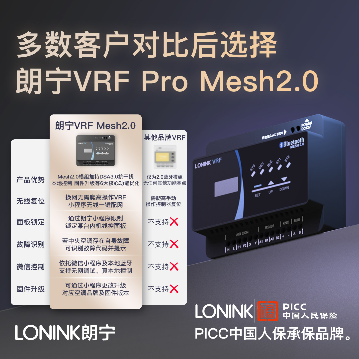 朗宁VRF中央空调控制器Pro蓝牙Mesh2.0智能远程控制网关接入米家
