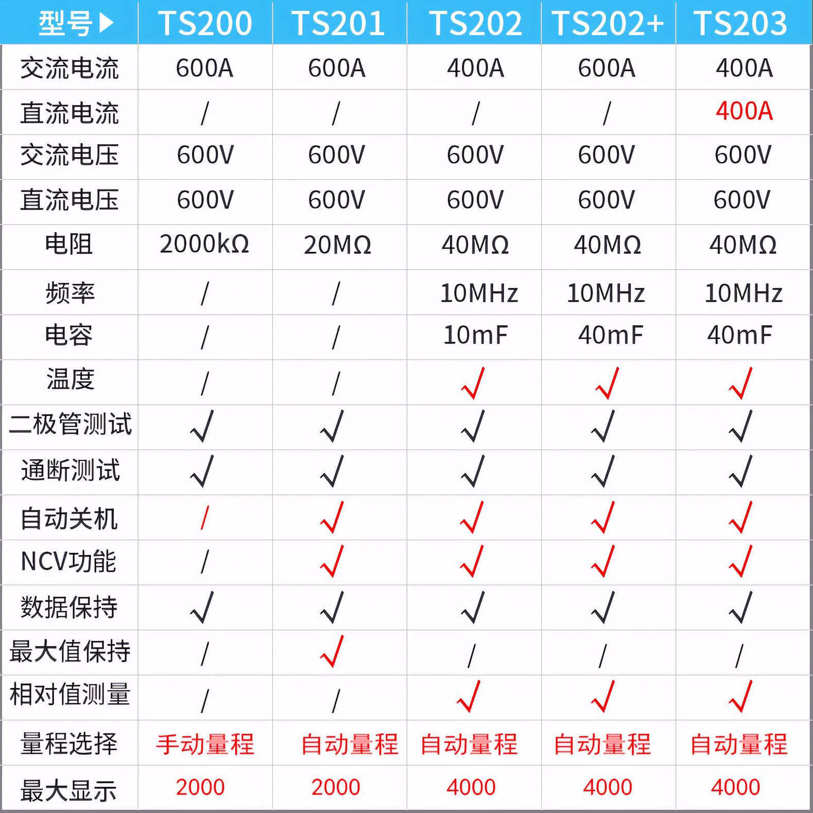 推荐理由:泰圣TS201/TS202数字钳形表/钳形电流表/钳形电压表数显多功能