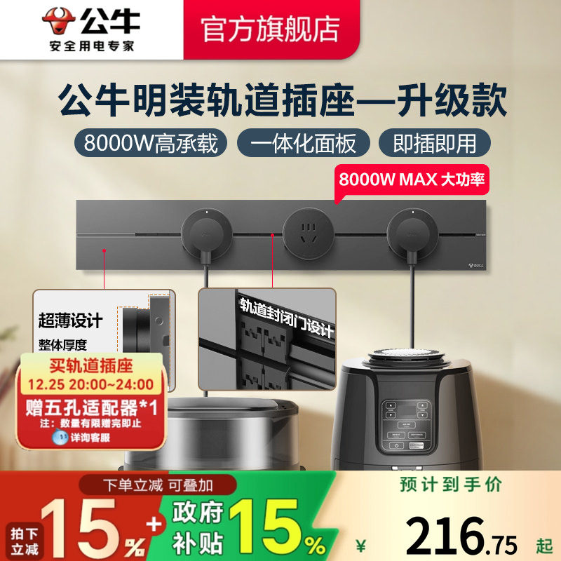 推荐理由:公牛可移动电力轨道插座厨房客厅排插超薄插座导轨插座新品升级