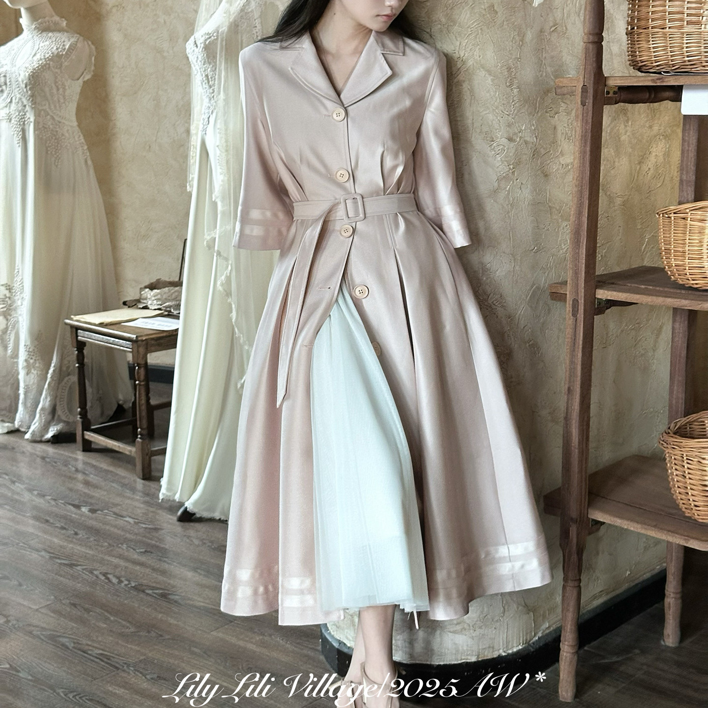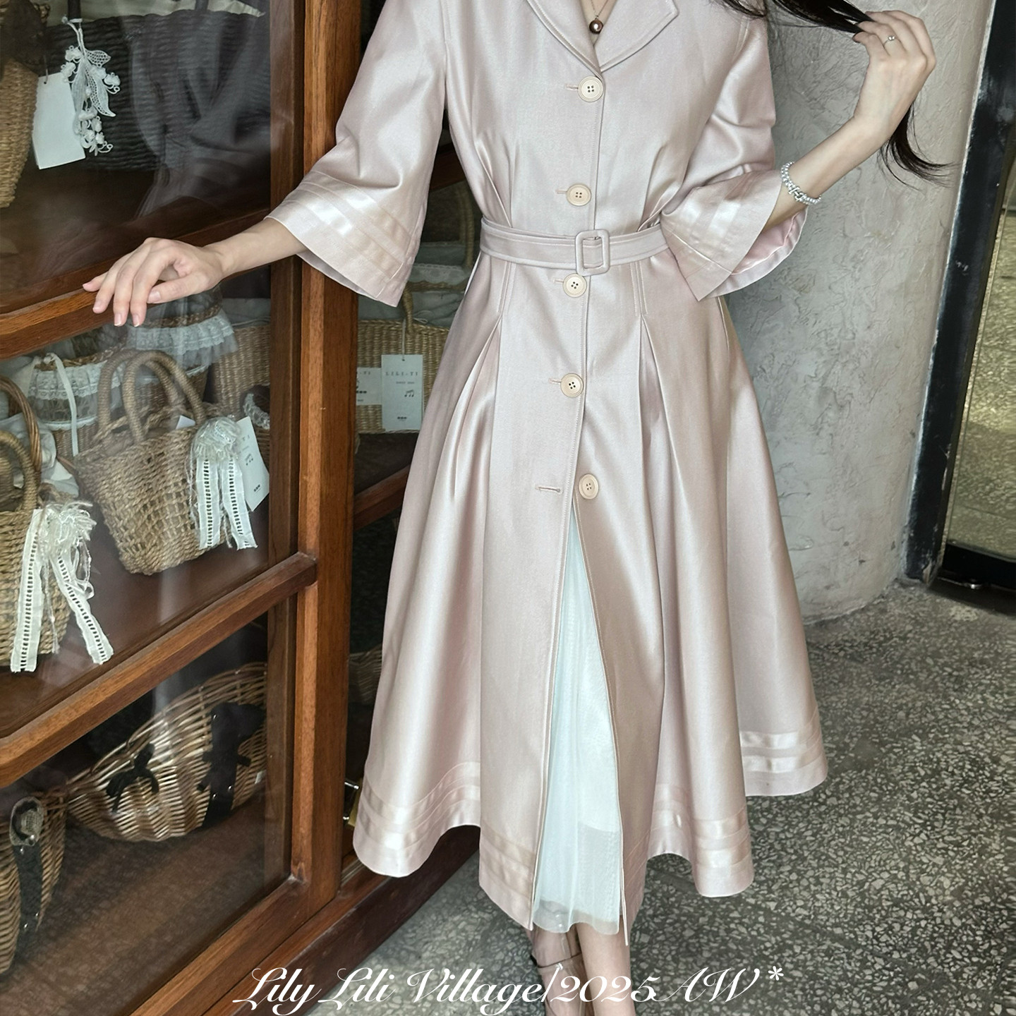 推荐理由:【肉桂香气】LIli百合乡原创半袖缎光斜纹连衣裙式外套+腰带风衣