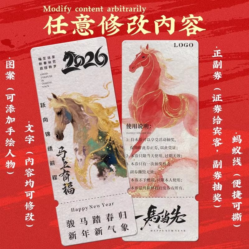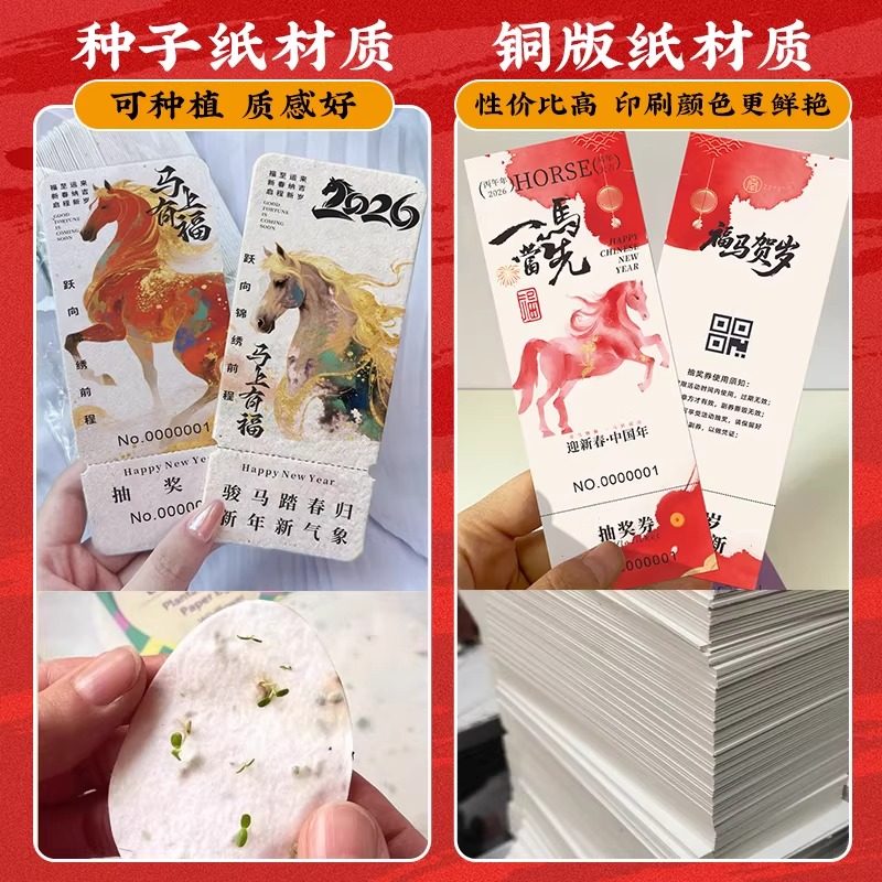 年会种子纸抽奖券定制马年道具箱编号码抽签卡片可撕门票根兑换券尾牙宴可种植发芽入场券2026新年邀请函设计