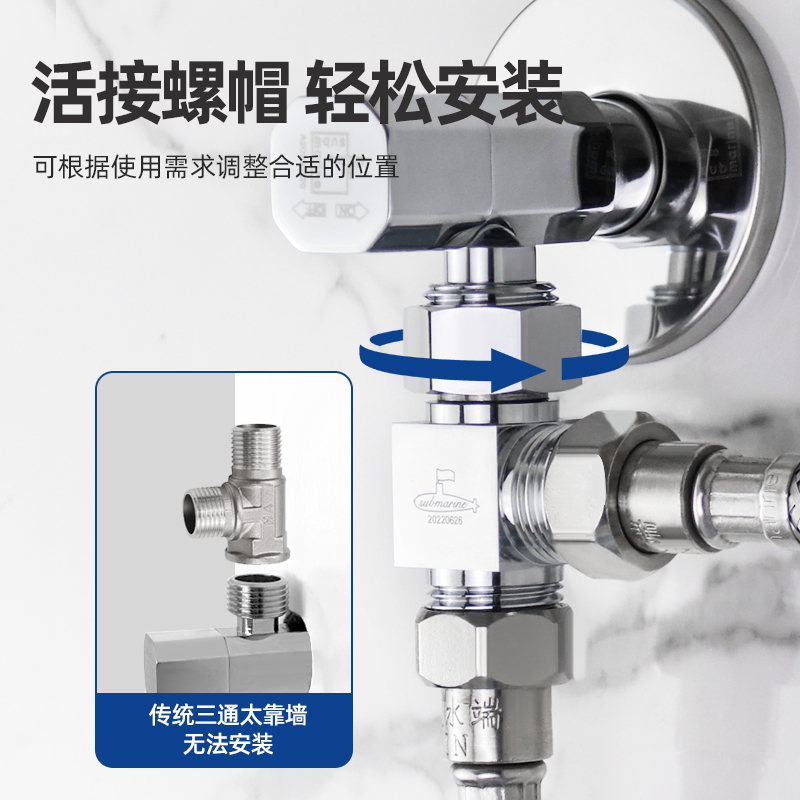 潜水艇三通分水阀一进二出角阀家用马桶分水器水龙头一分二接头铜