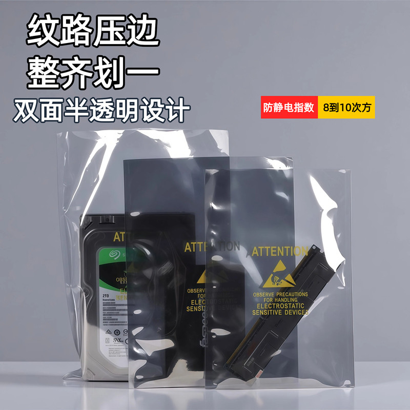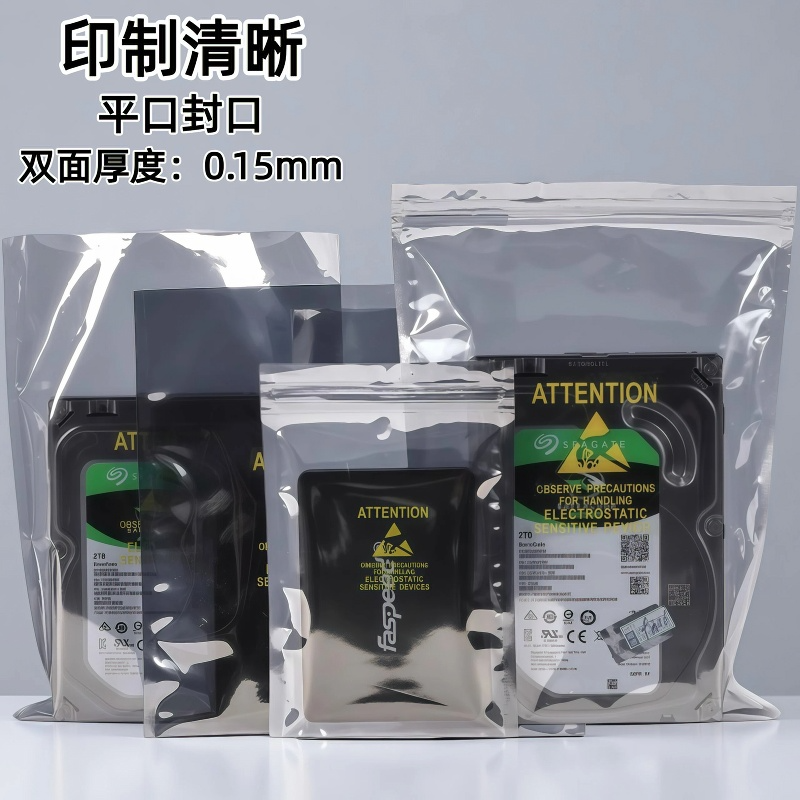 推荐理由:印刷防静电标识平口自封静电袋硬盘主板显卡电子元件IC屏蔽包装袋