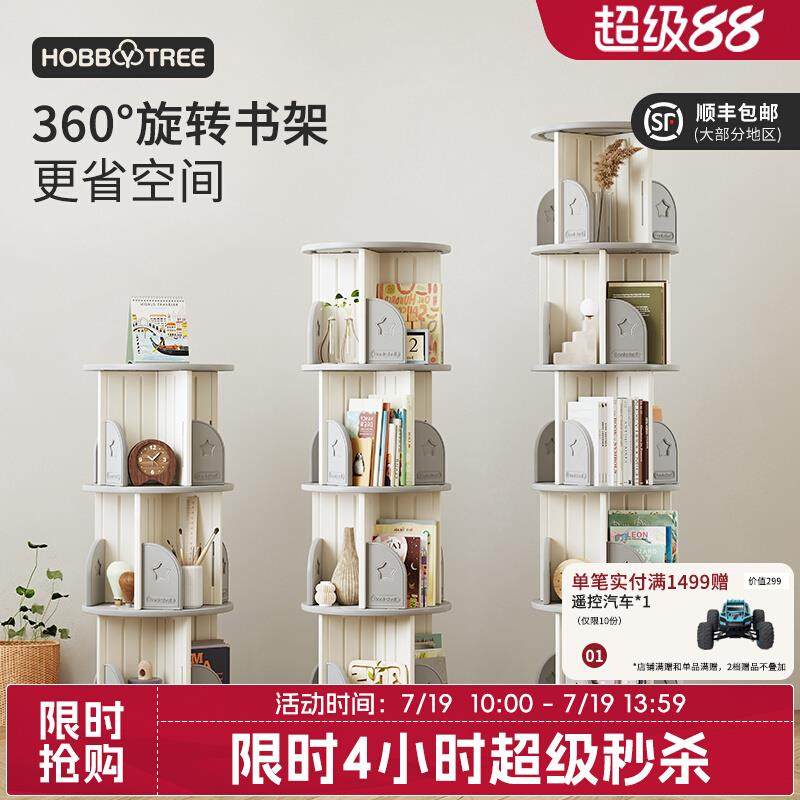 哈比树旋转书架360度书柜儿童落地小型绘本架可移动简易网红家用