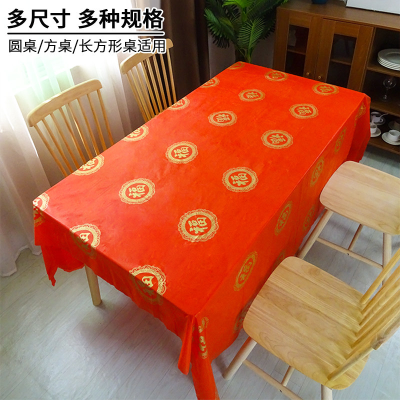 新年一次性桌布圆桌过年乔迁之喜新居搬家用喜宴红色春节福字台布