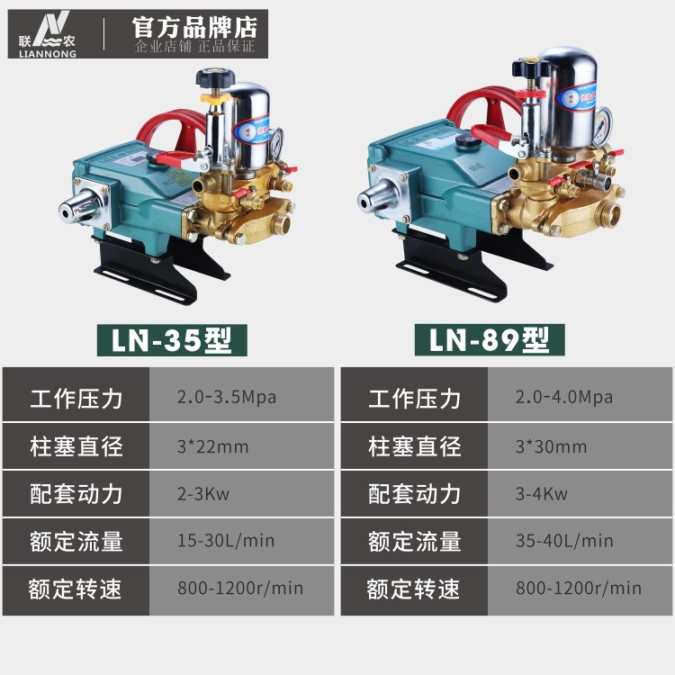 推荐理由:联农LN-35/89型三缸柱塞泵农用高压打药机喷雾器汽柴油机电机泵头