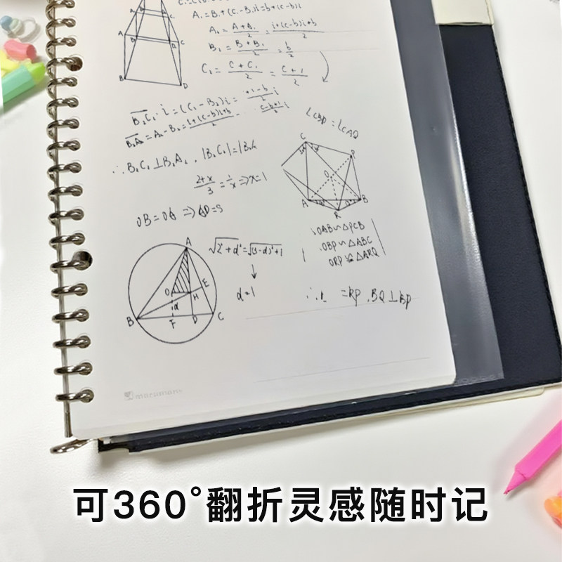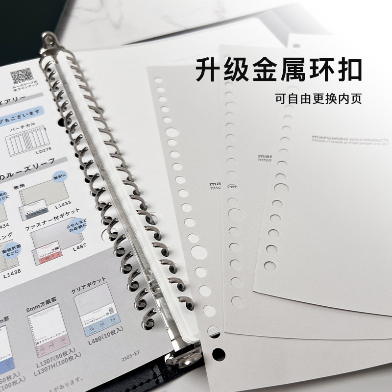 日本Maruman满乐文 Smart Binder 皮革封面 金属活页本 A5大容量记事本 可360度翻折笔记本 智能活页夹