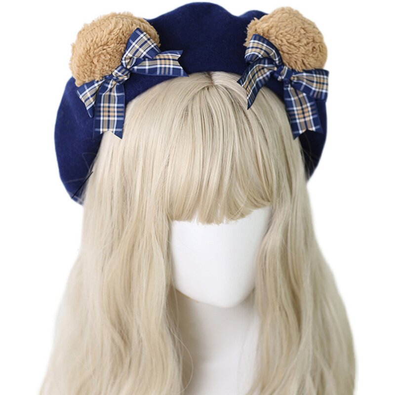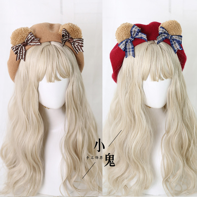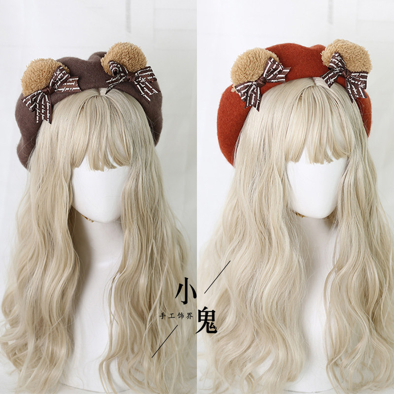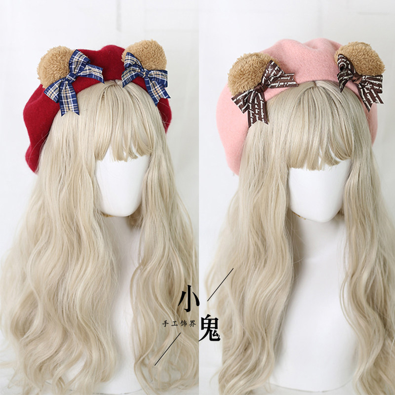 Lolita洛丽塔小熊耳朵贝雷帽可爱画家帽日系手工饰品烧饼蓓蕾帽子