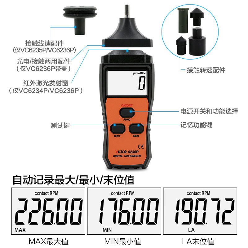 胜利转速表数显光电式高精度测速计电机仪器两用接触式马达线速表