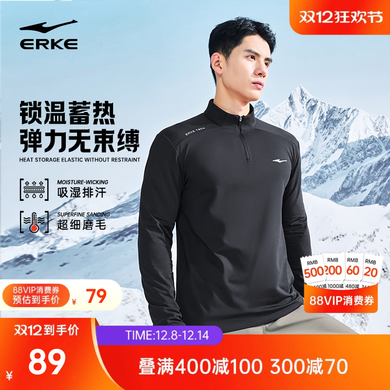 鸿星尔克长袖t恤男冬季新款男士加厚保暖跑步训练服运动上衣卫衣