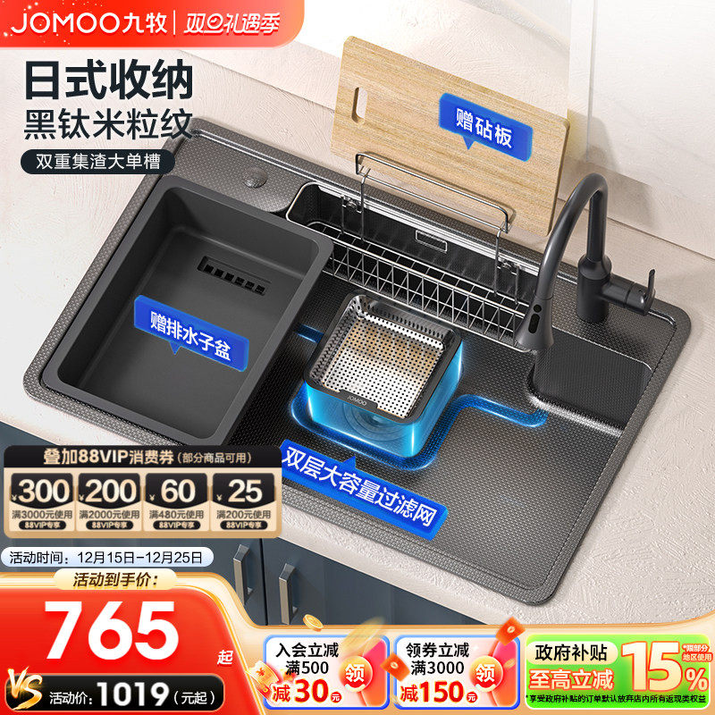 九牧官方水槽厨房大单槽不锈钢纳米日式家用洗碗台下洗菜盆水池