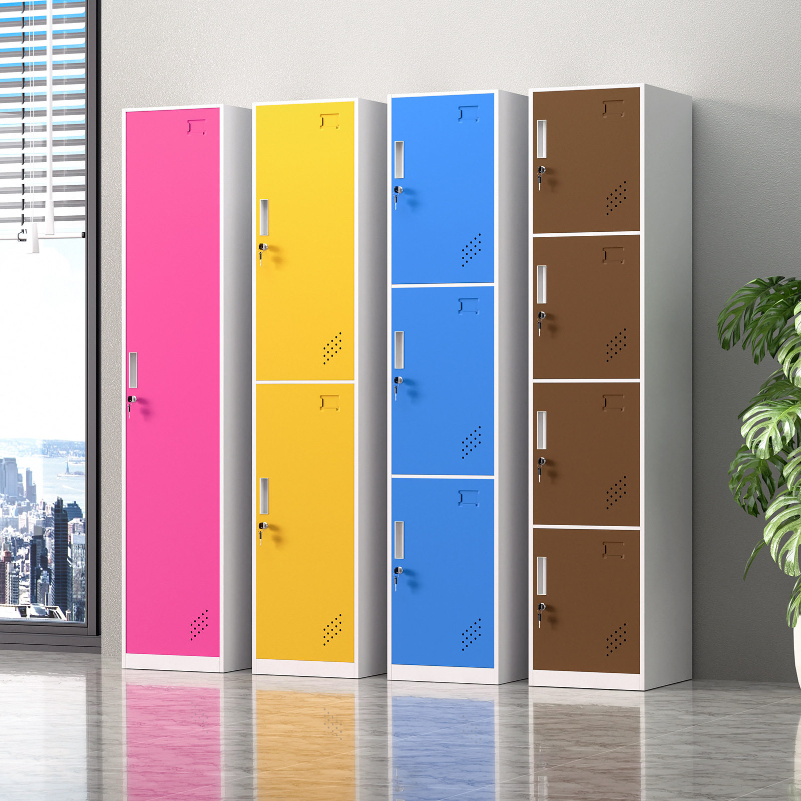 单门更衣柜铁皮柜子员工宿舍储物柜带锁浴室更衣箱单人办公换衣柜