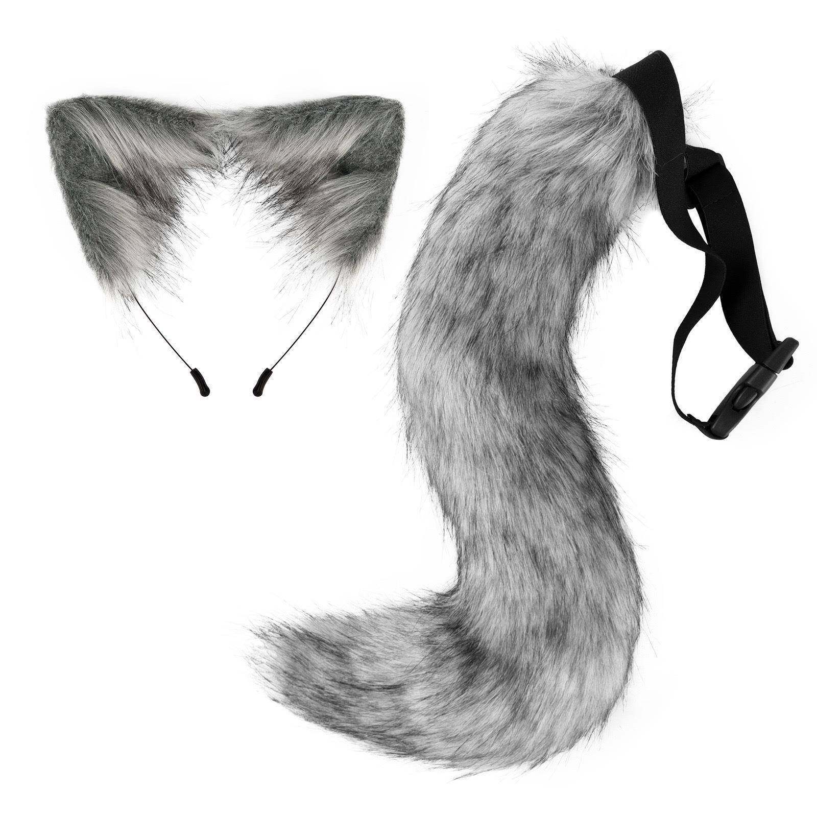 (尾巴+耳朵)COS套装猫娘狐妖配饰组合耳饰毛绒仿真兽尾