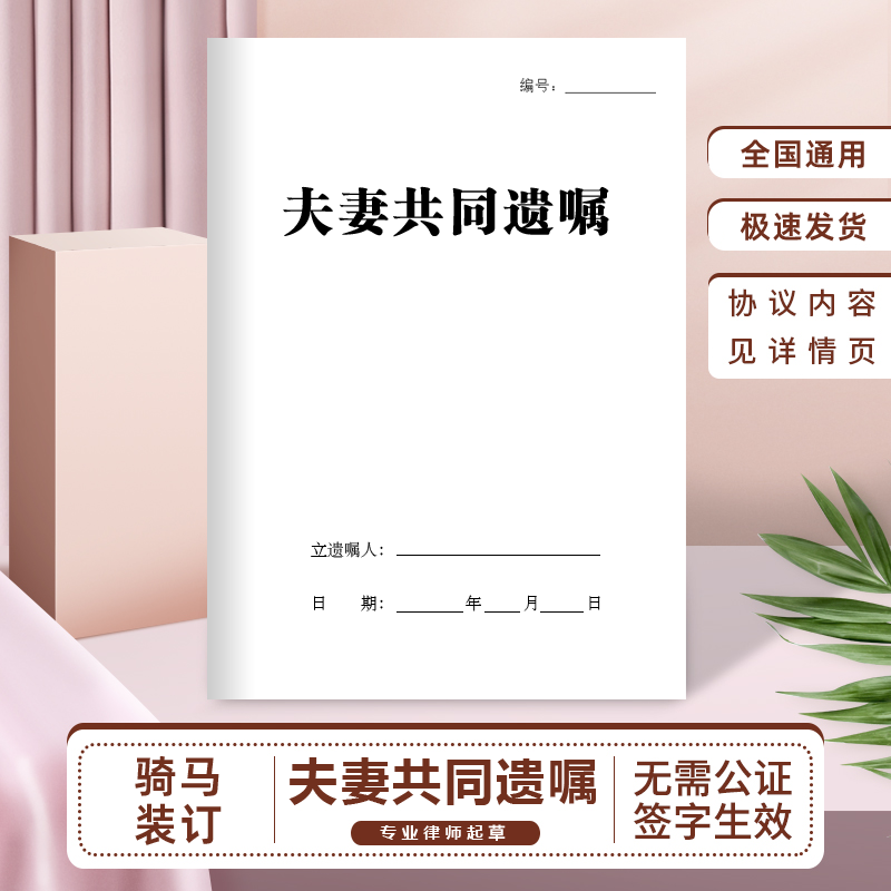 夫妻共同遗嘱纸质版房屋财产继承财产传承自书遗嘱正规家庭继承法