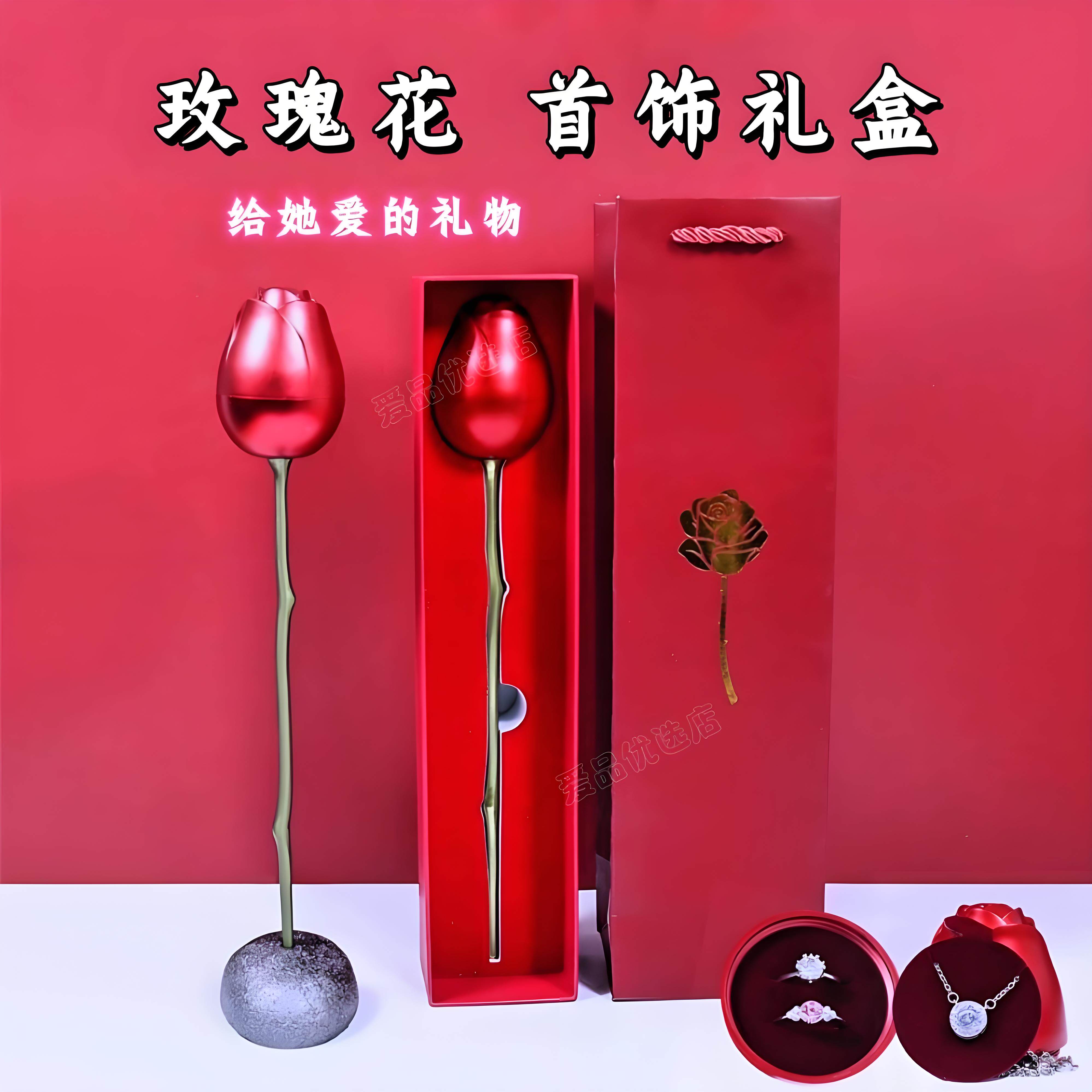 推荐理由:玫瑰花首饰礼盒精美项链盒高档戒指包装盒精致七夕情人节礼物盒子