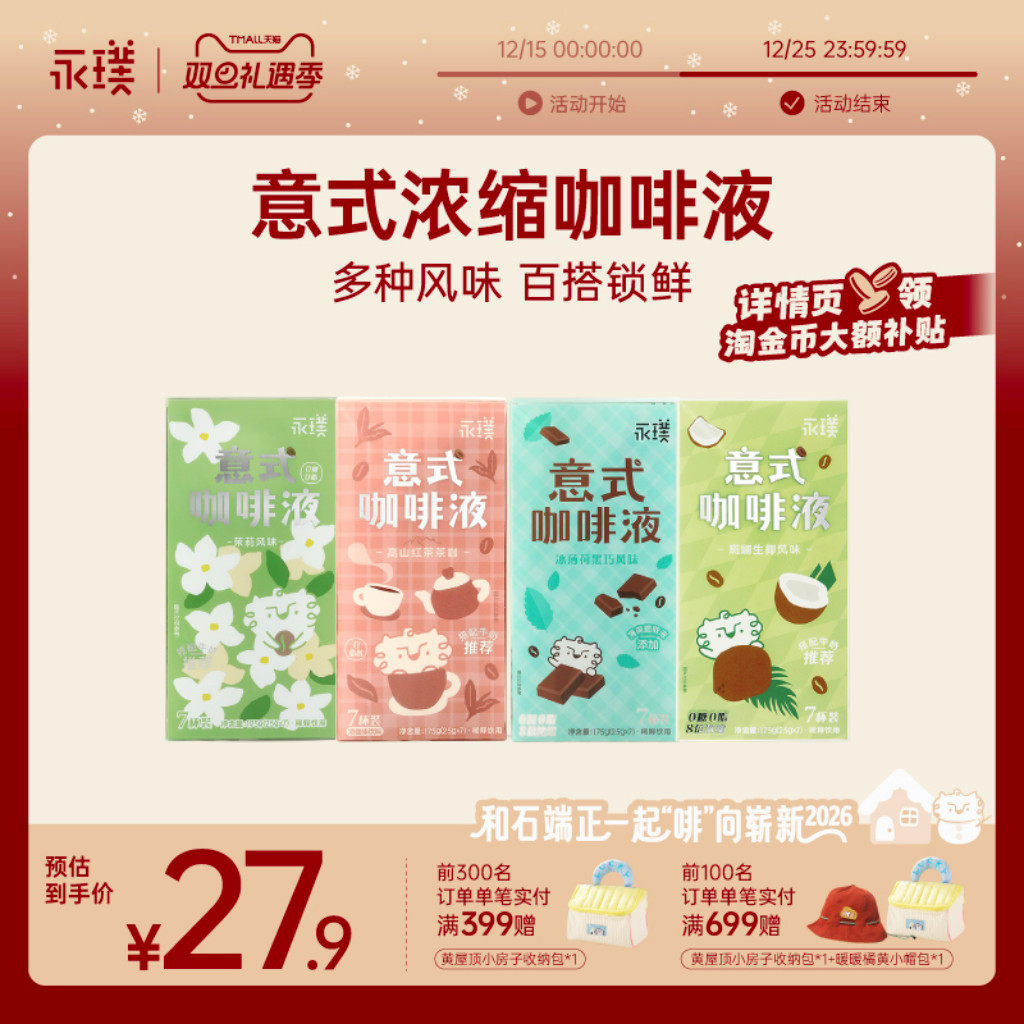 推荐理由:永璞咖啡浓缩液黑咖速溶黑咖美式生椰拿铁条包25g*7杯