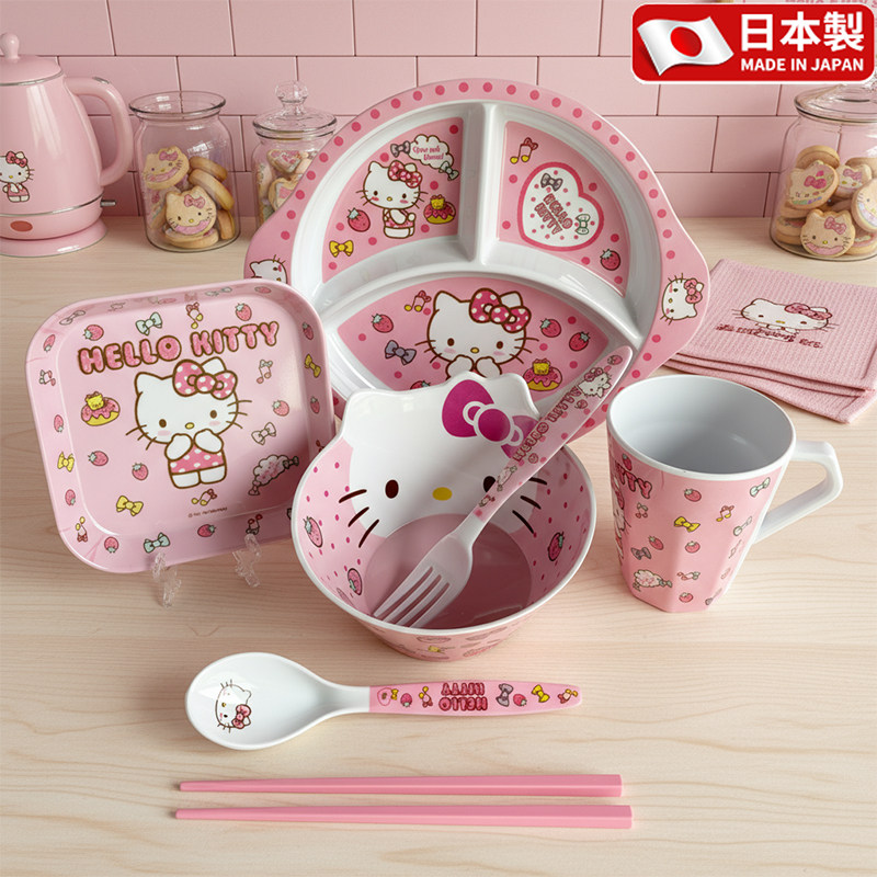 日本凯蒂猫儿童餐具套装密胺材质耐摔防烫小孩专用吃饭把手腕餐盘
