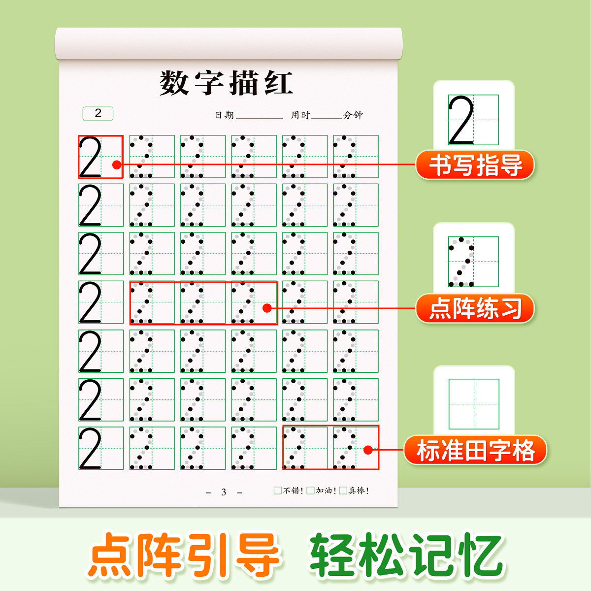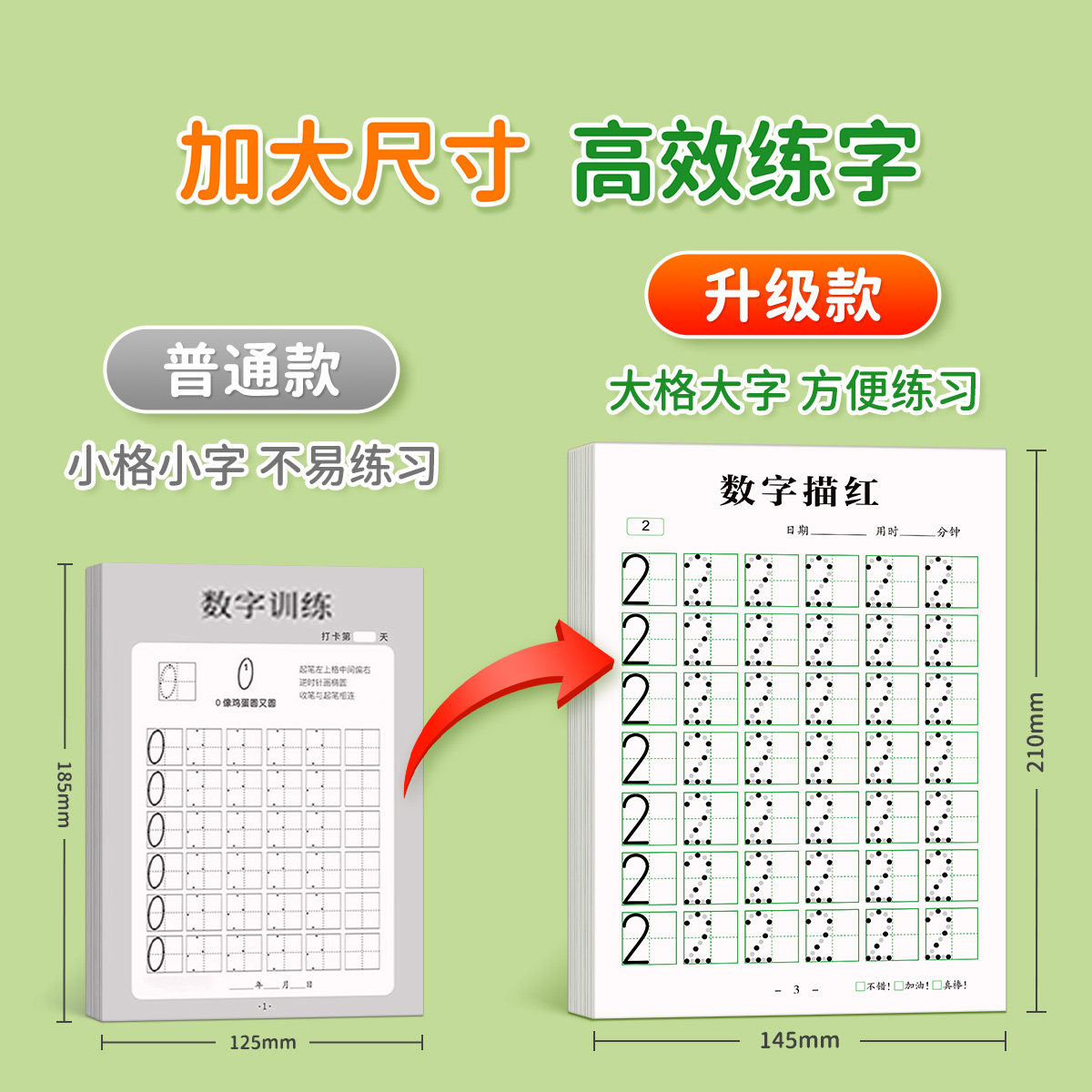 儿童数字练字帖幼儿点阵控笔训练描红本幼儿园字帖幼小衔接学前班写字帖幼升小中班大班练习册入门初学者每日一练全套1到10练字本