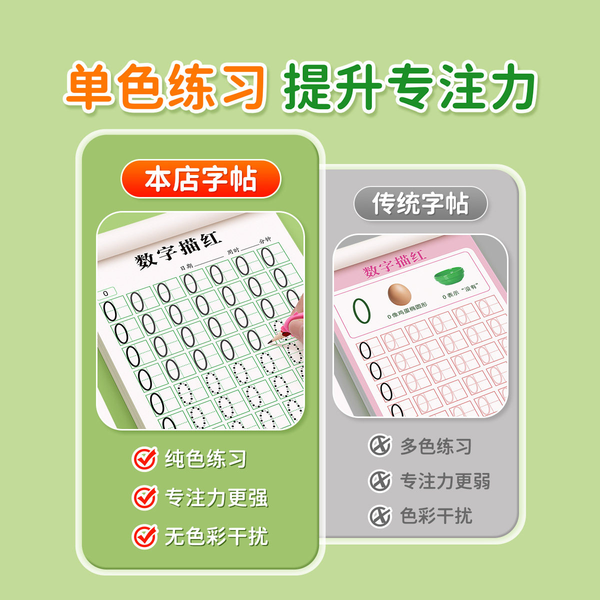 推荐理由:儿童数字练字帖幼儿点阵控笔训练描红本幼儿园字帖幼小衔接学前班写字帖幼升小中班大班练习册入门初学者每日一练全套1到10练字本