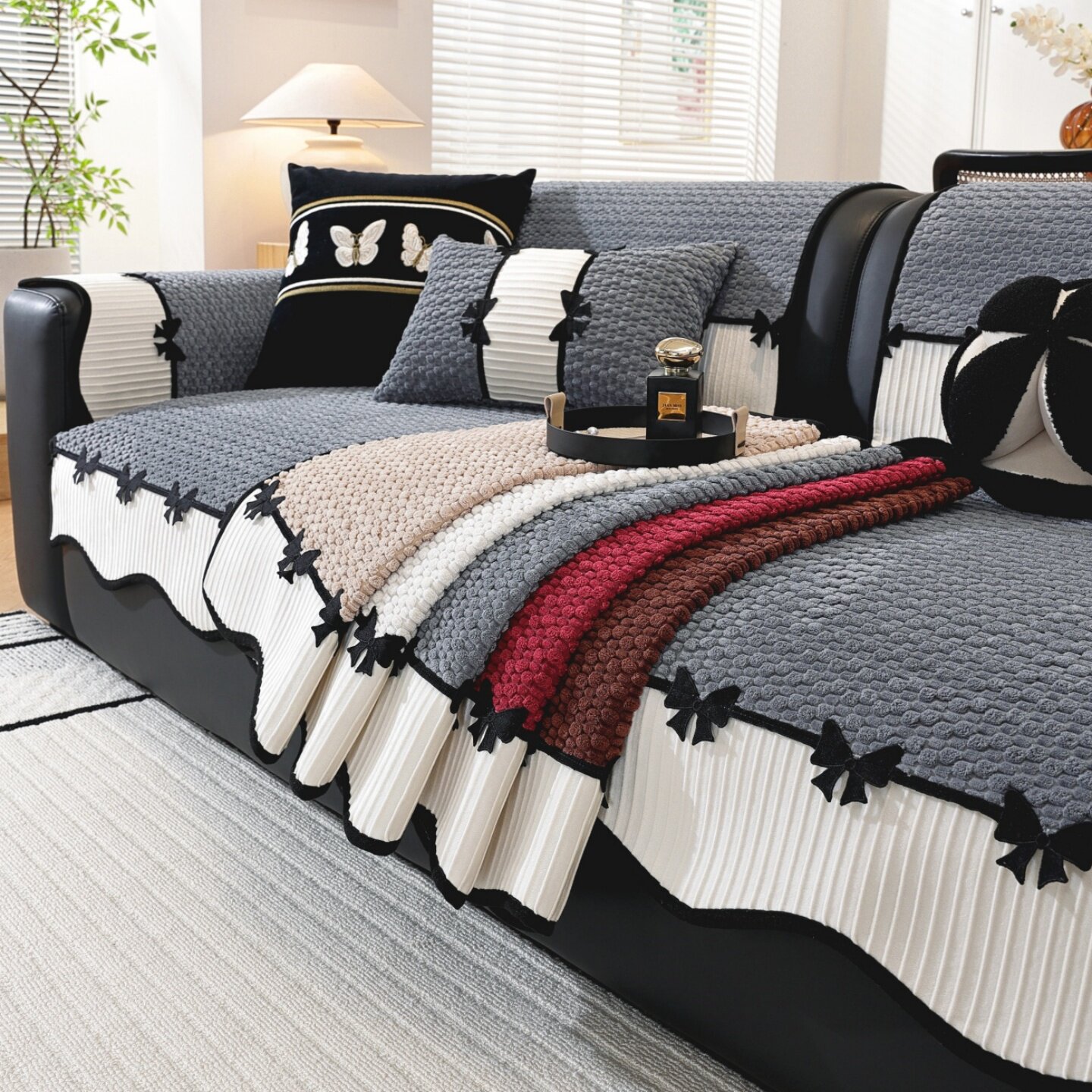 新款法式灯芯绒异形沙发垫防滑高级感直排一片式沙发套罩毛绒冬季